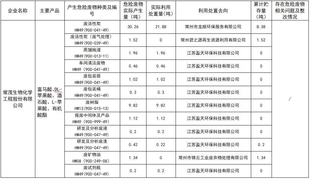 常茂生物危险废物污染防治责任信息公开(2026年1月-3月)