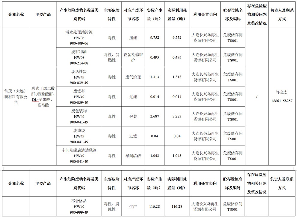 常茂(大连)危险废物污染防治责任信息公开(2025年10月-12月)